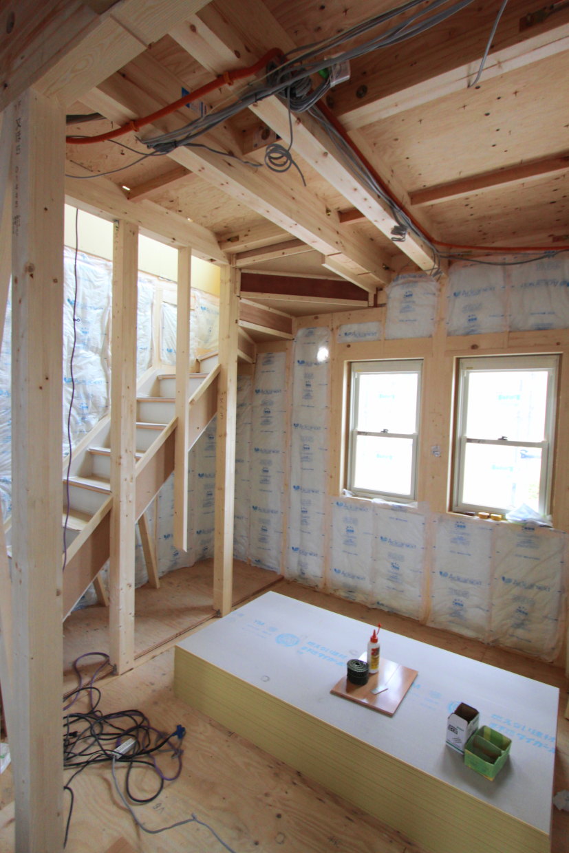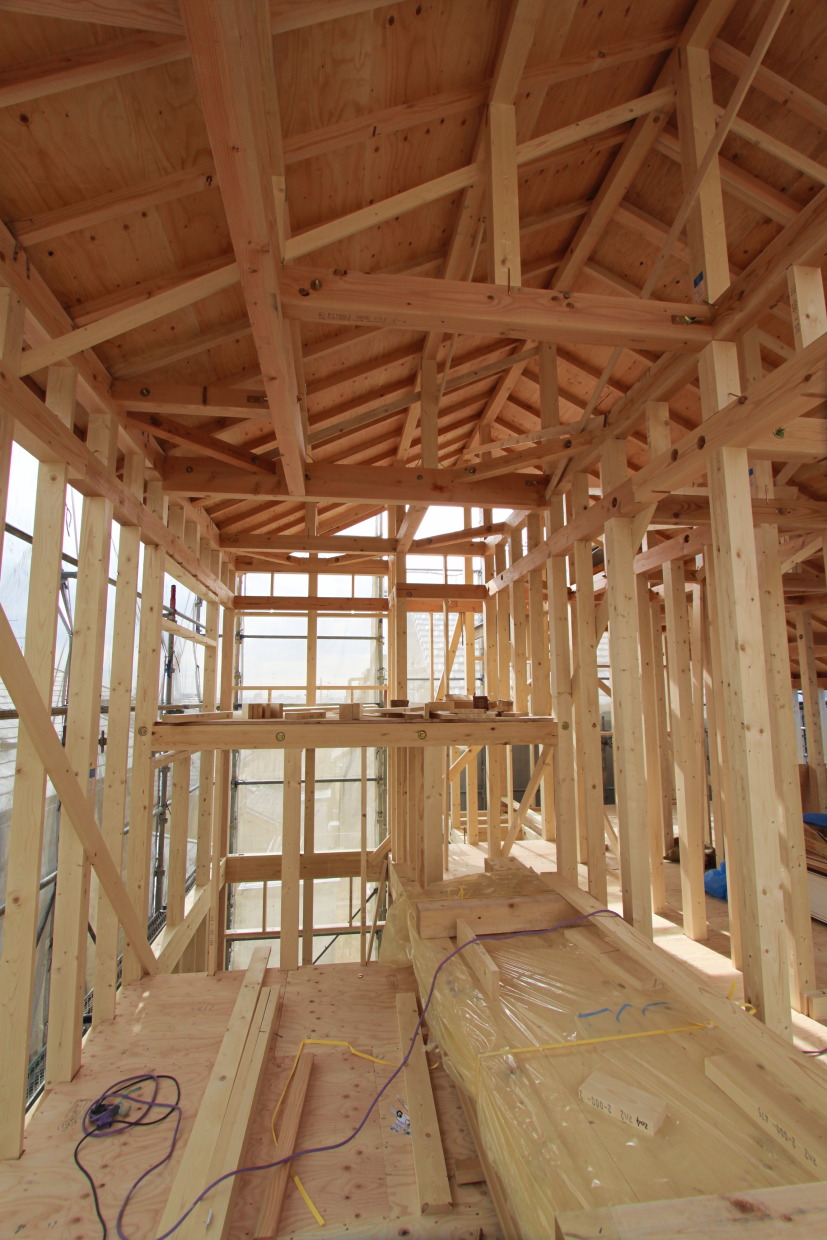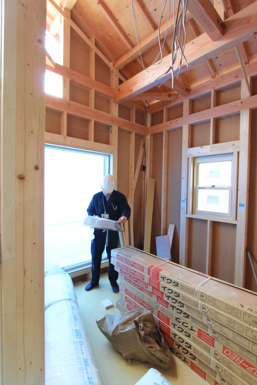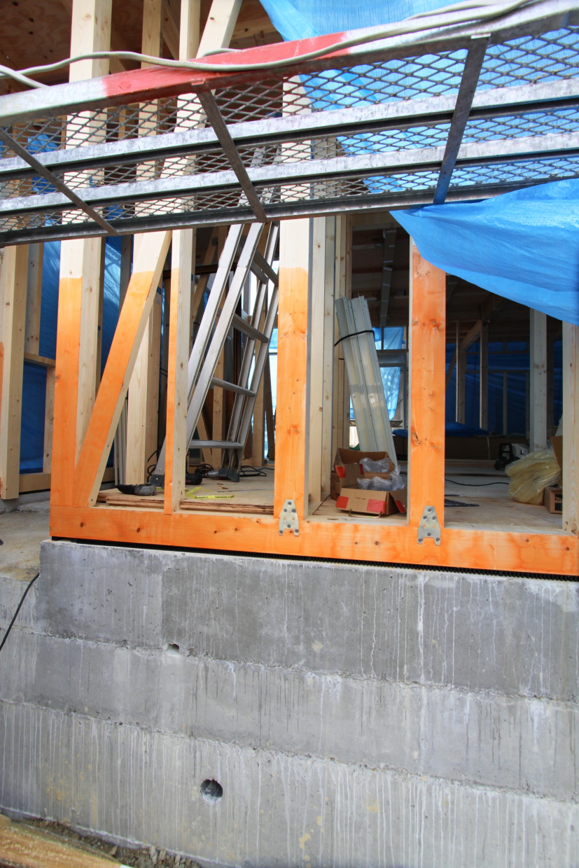 | 耐震性を高めるため、外壁に高強度・恒久性の壁面材ダイライトを貼りました |
