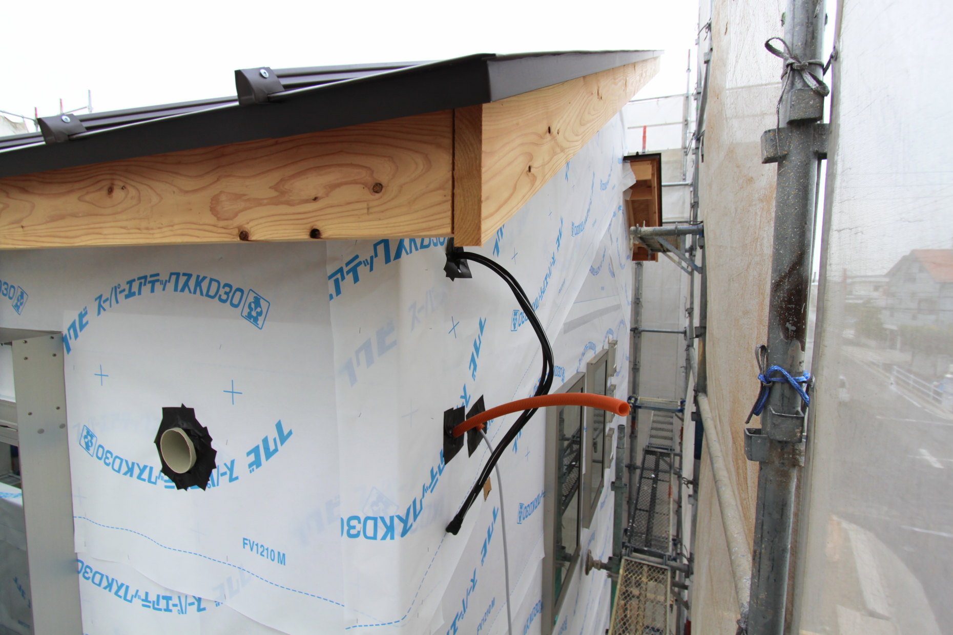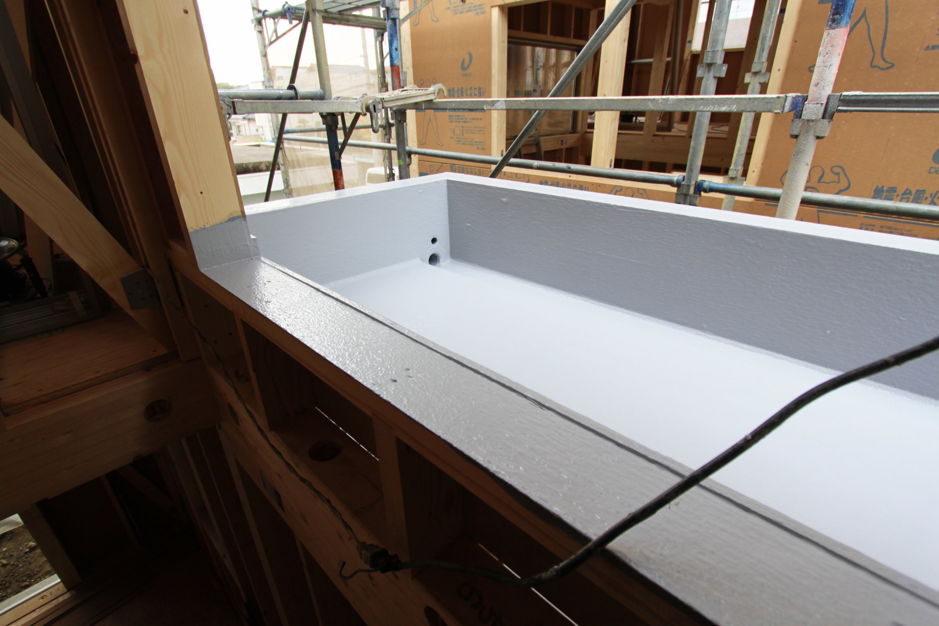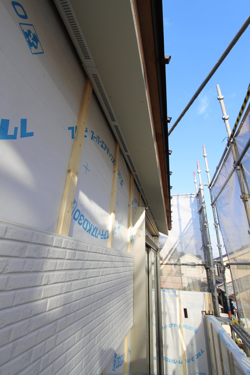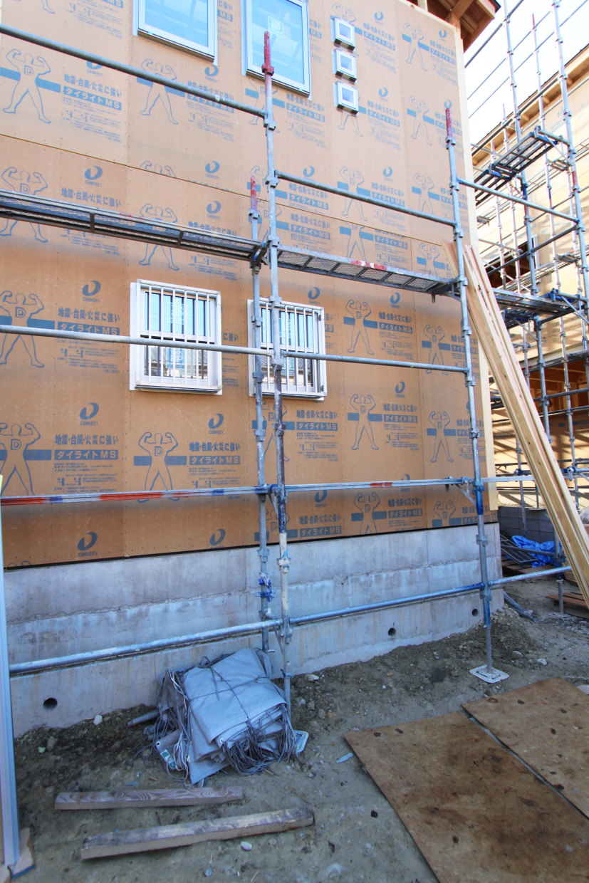 | 耐震性を高めるため、外壁に高強度・恒久性の壁面材ダイライトを貼りました |
