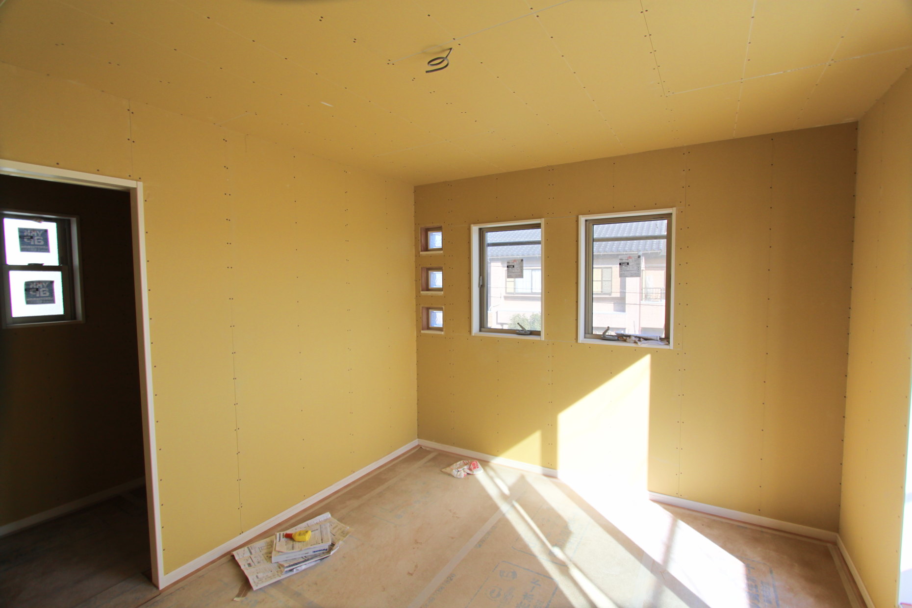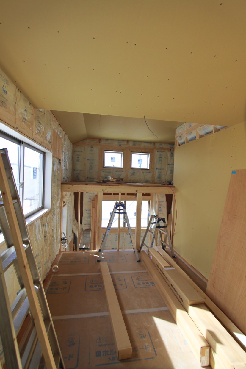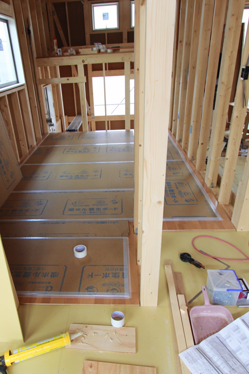 | 2F床フローリング施工中 | |||||||