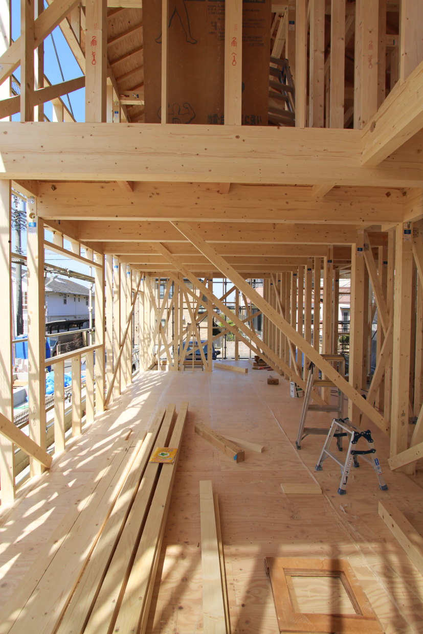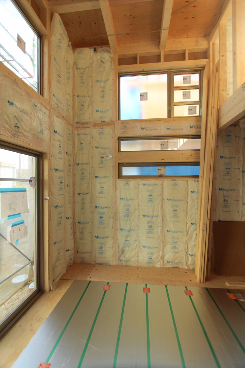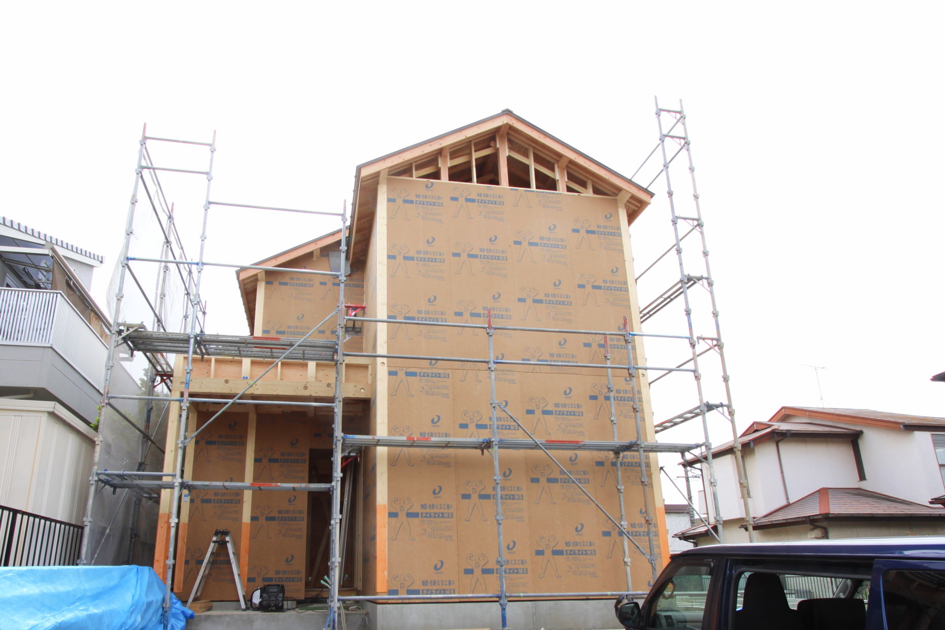 | 耐震性を高めるため、外壁に高強度・恒久性の壁面材ダイライトを貼りました |