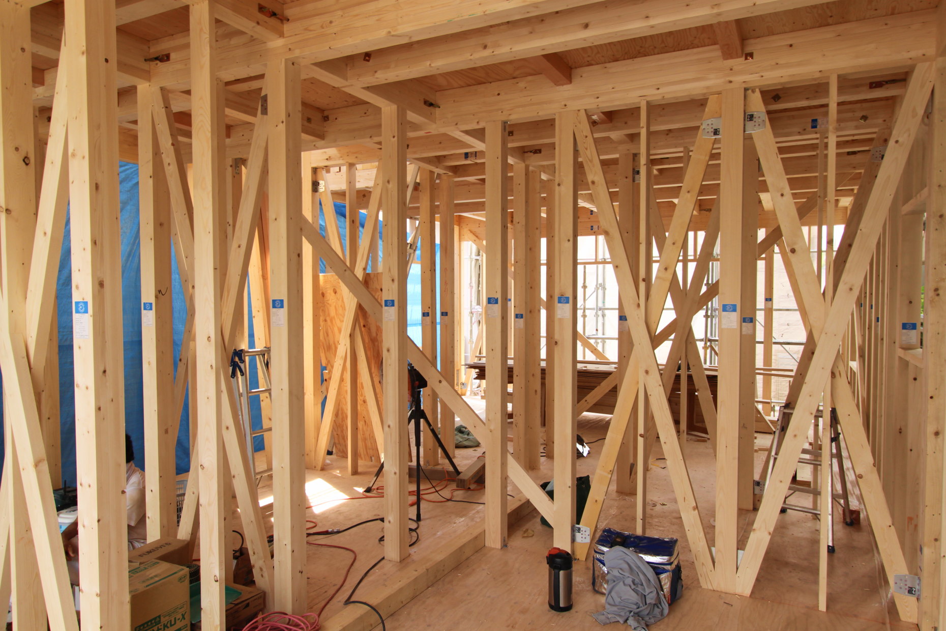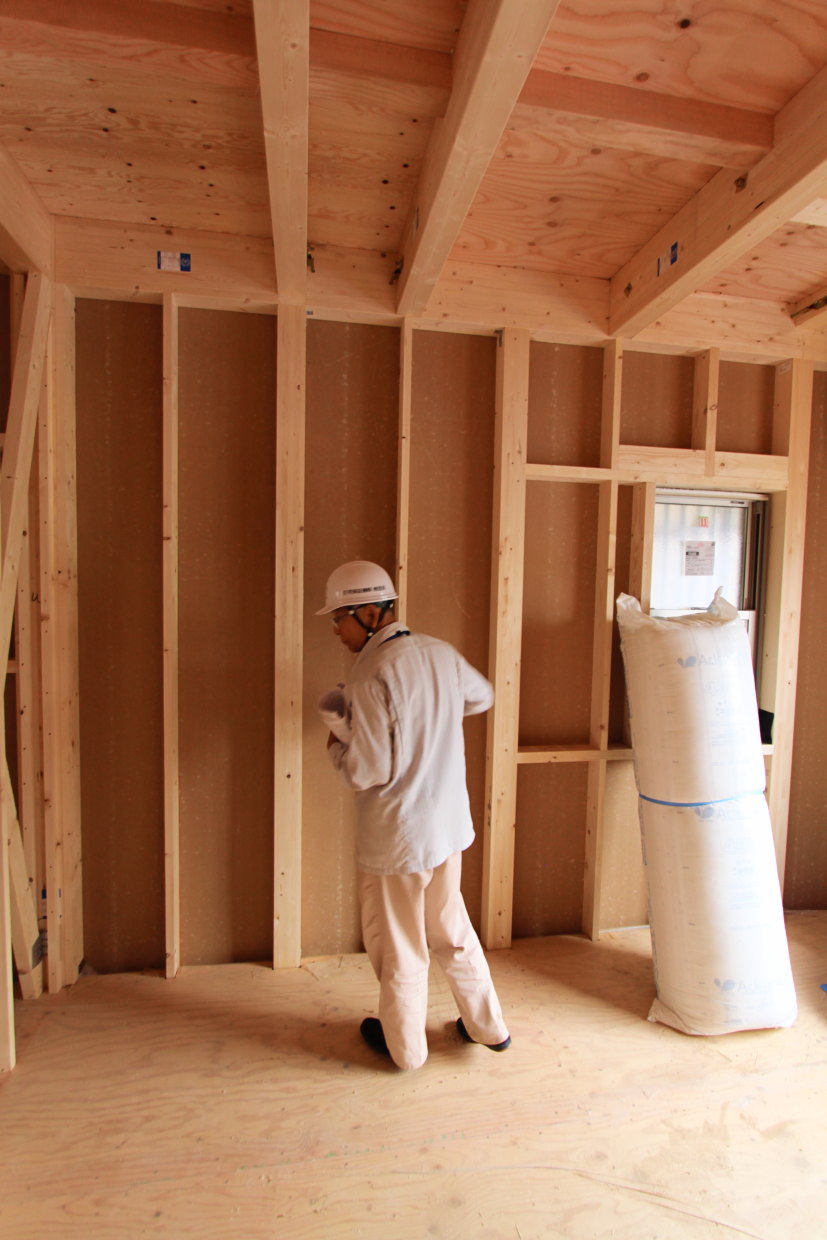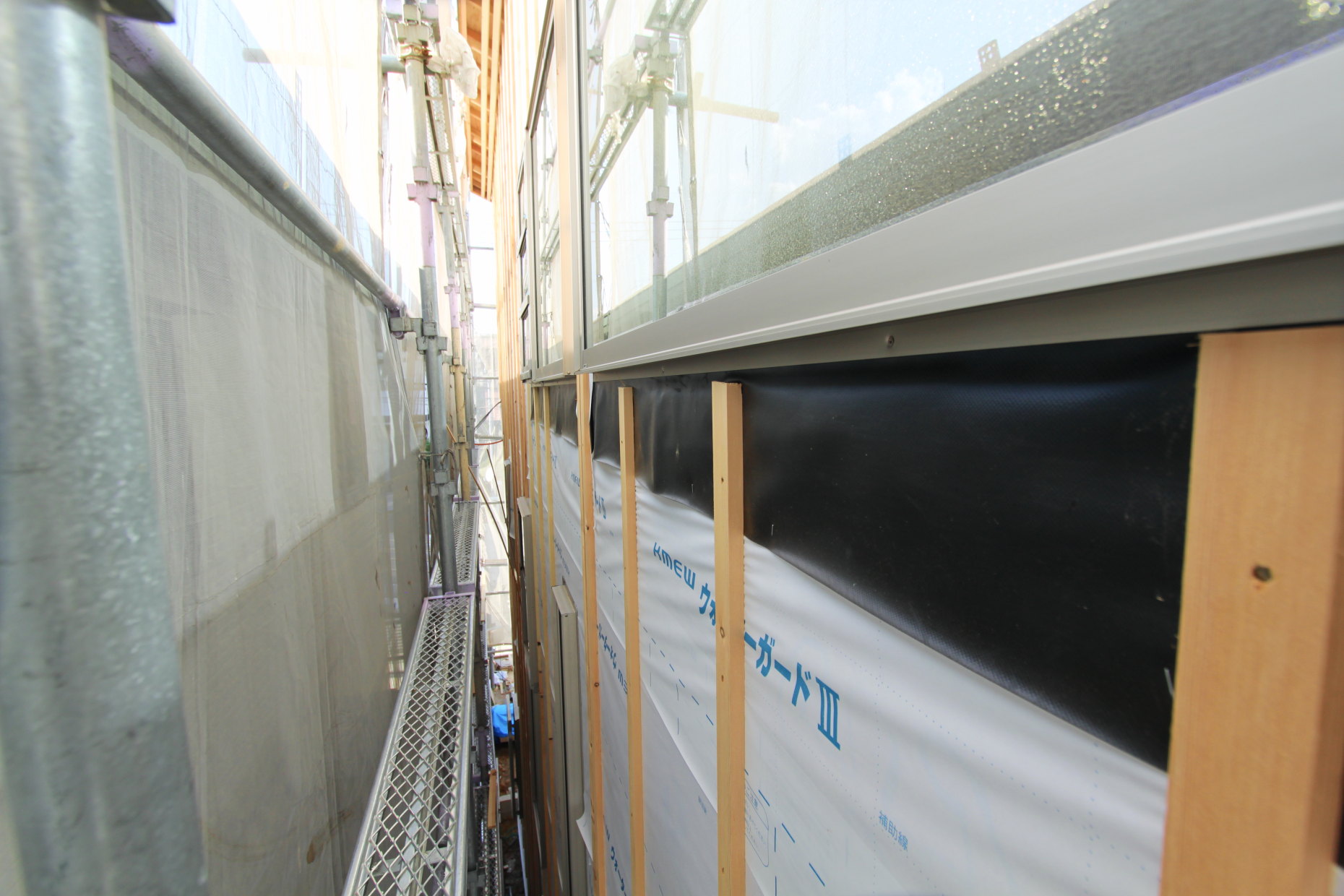 | 耐震性を高めるため、外壁に高強度・恒久性の壁面材ダイライトを貼りました |