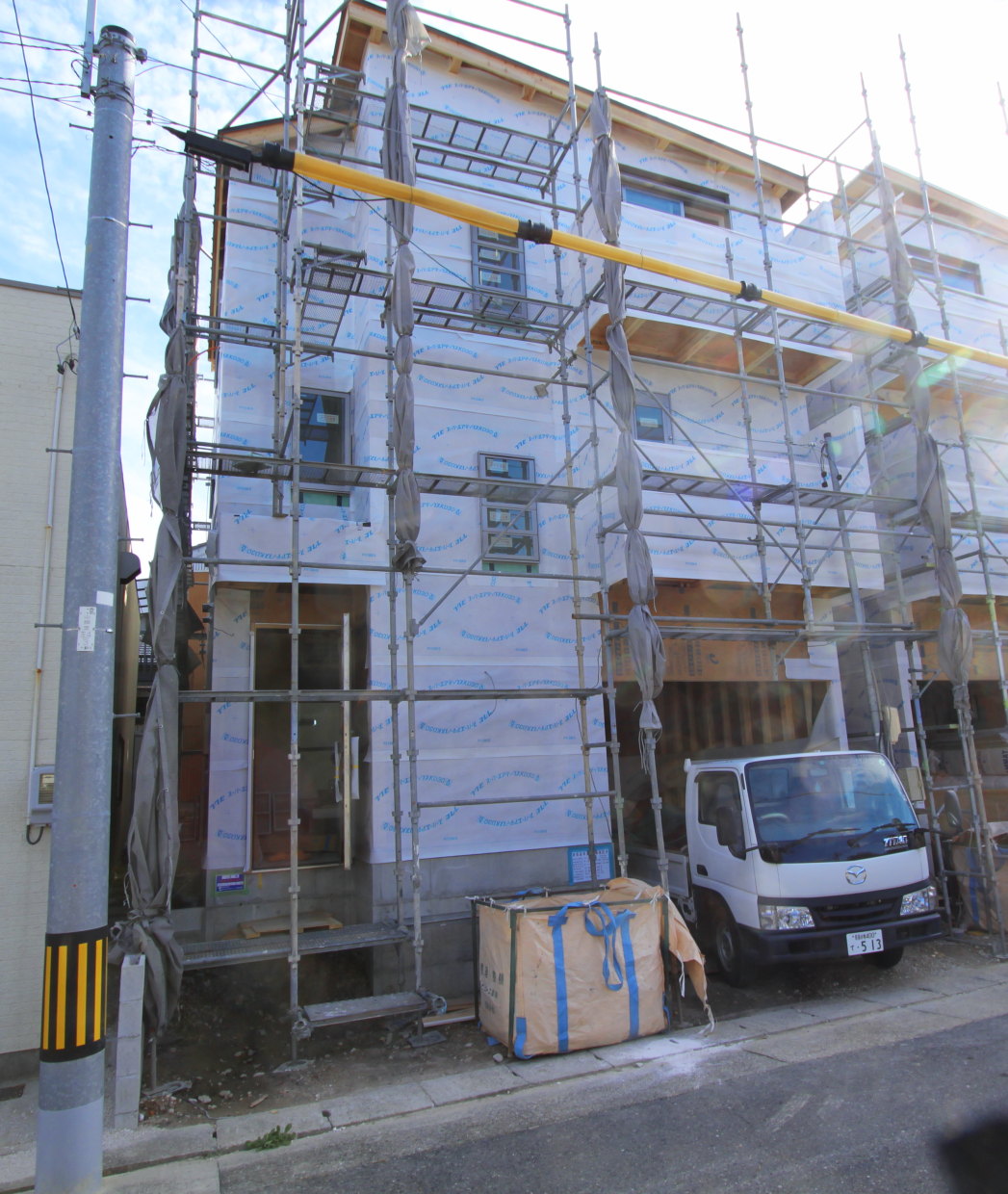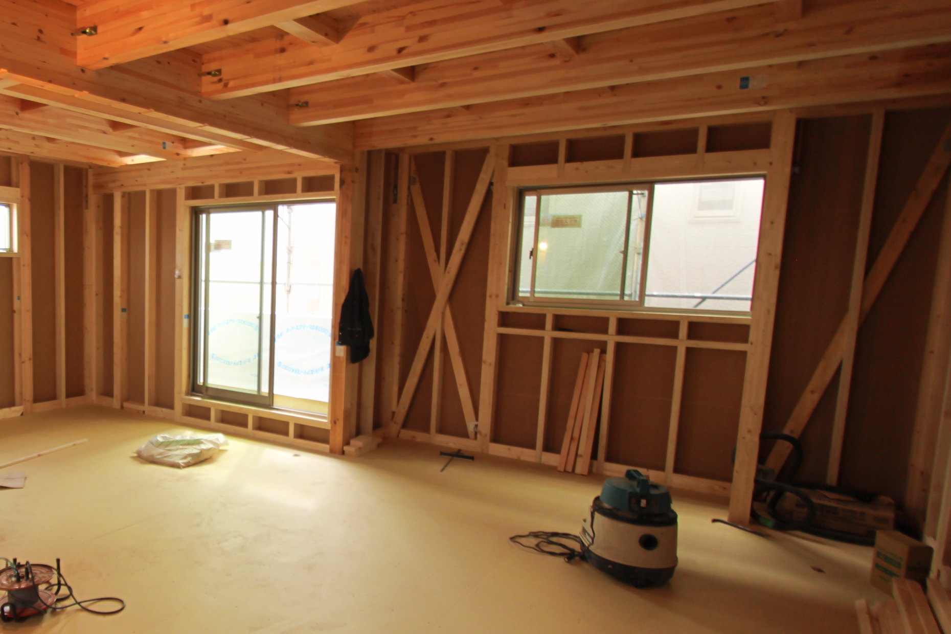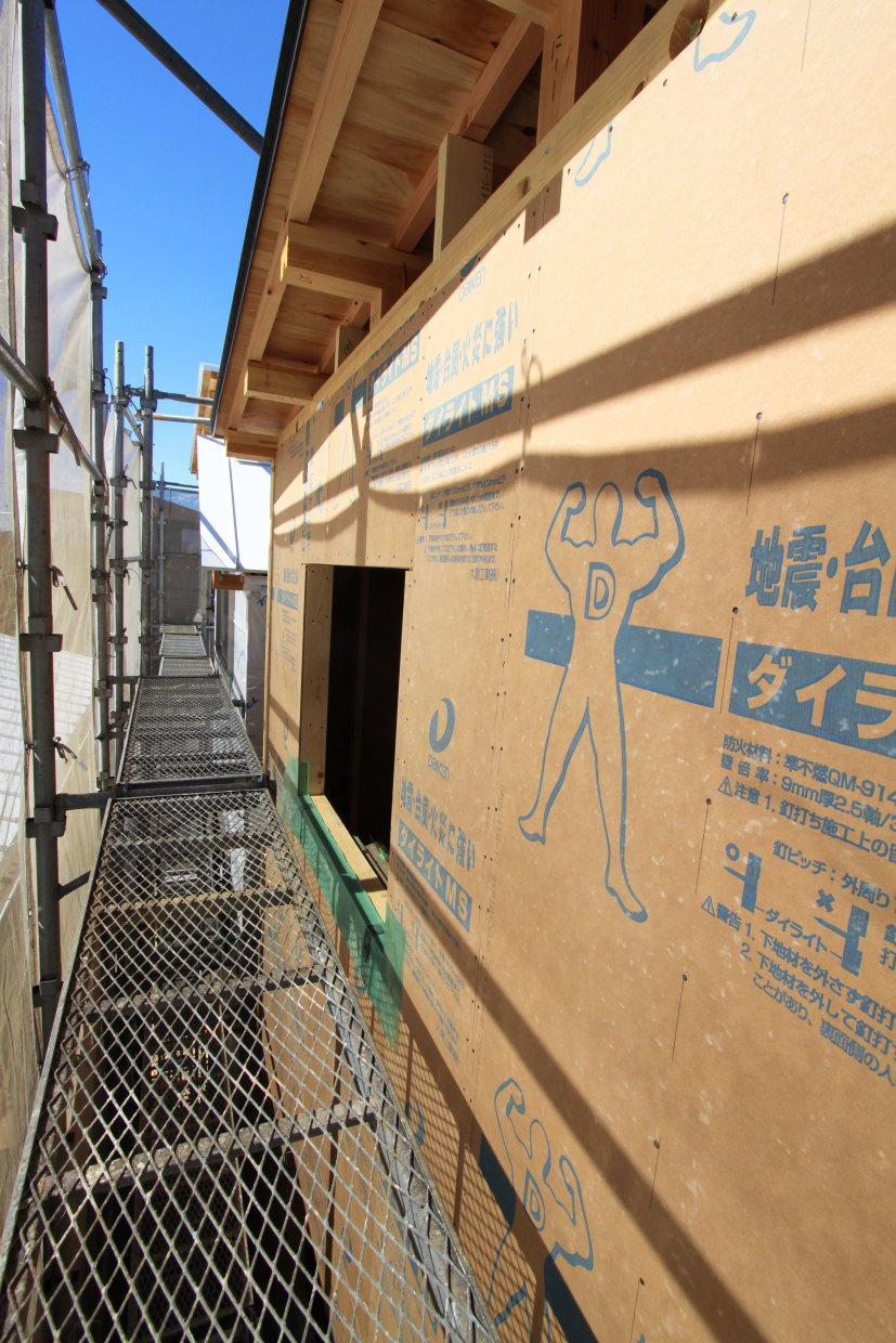 | 耐震性を高めるため、外壁に高強度・恒久性の壁面材ダイライトを貼りました | |||||||