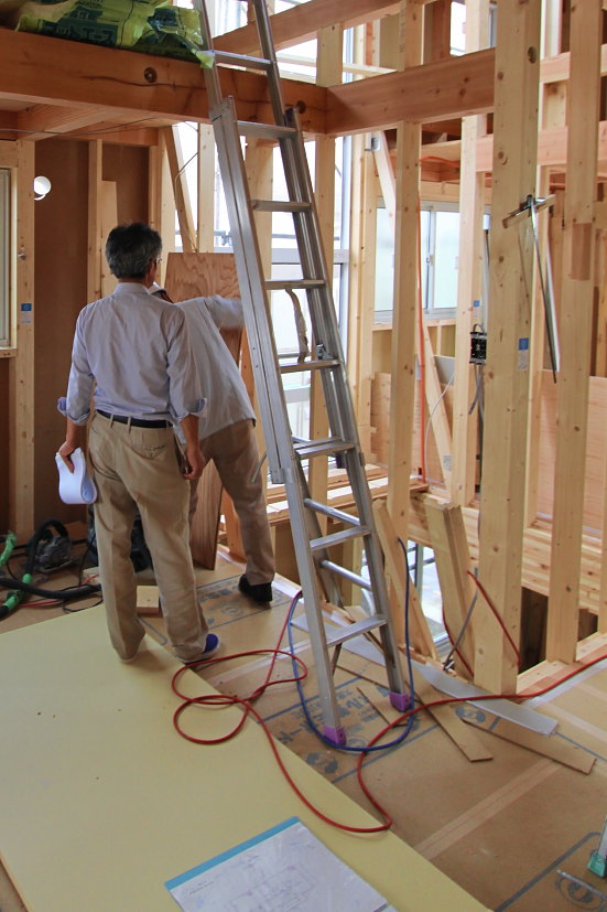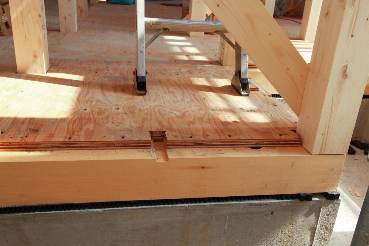 | 2F床は、プラスターボードを施工 (構造用合板+プラスターボード+フローリングの三層構造により遮音・剛性がアップします) |